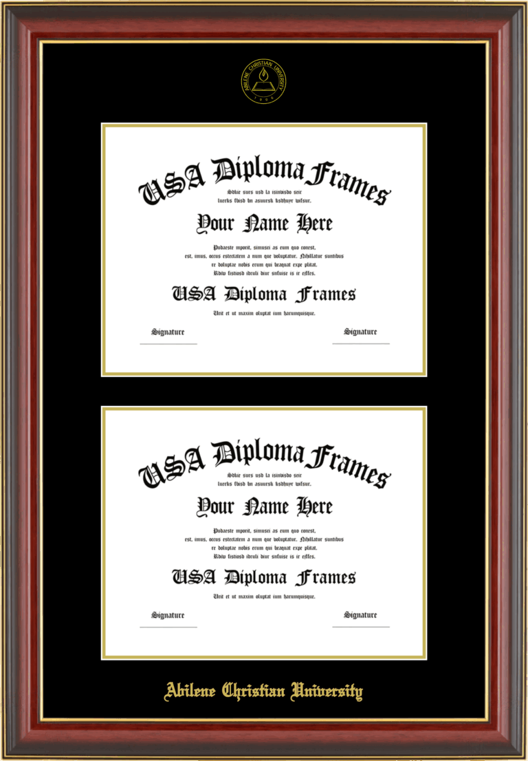 Abilene Christian University Double Diploma Frame – ACU Double Document – Cherry Mahogany Gold Trim Glossy – Black and Gold Mat