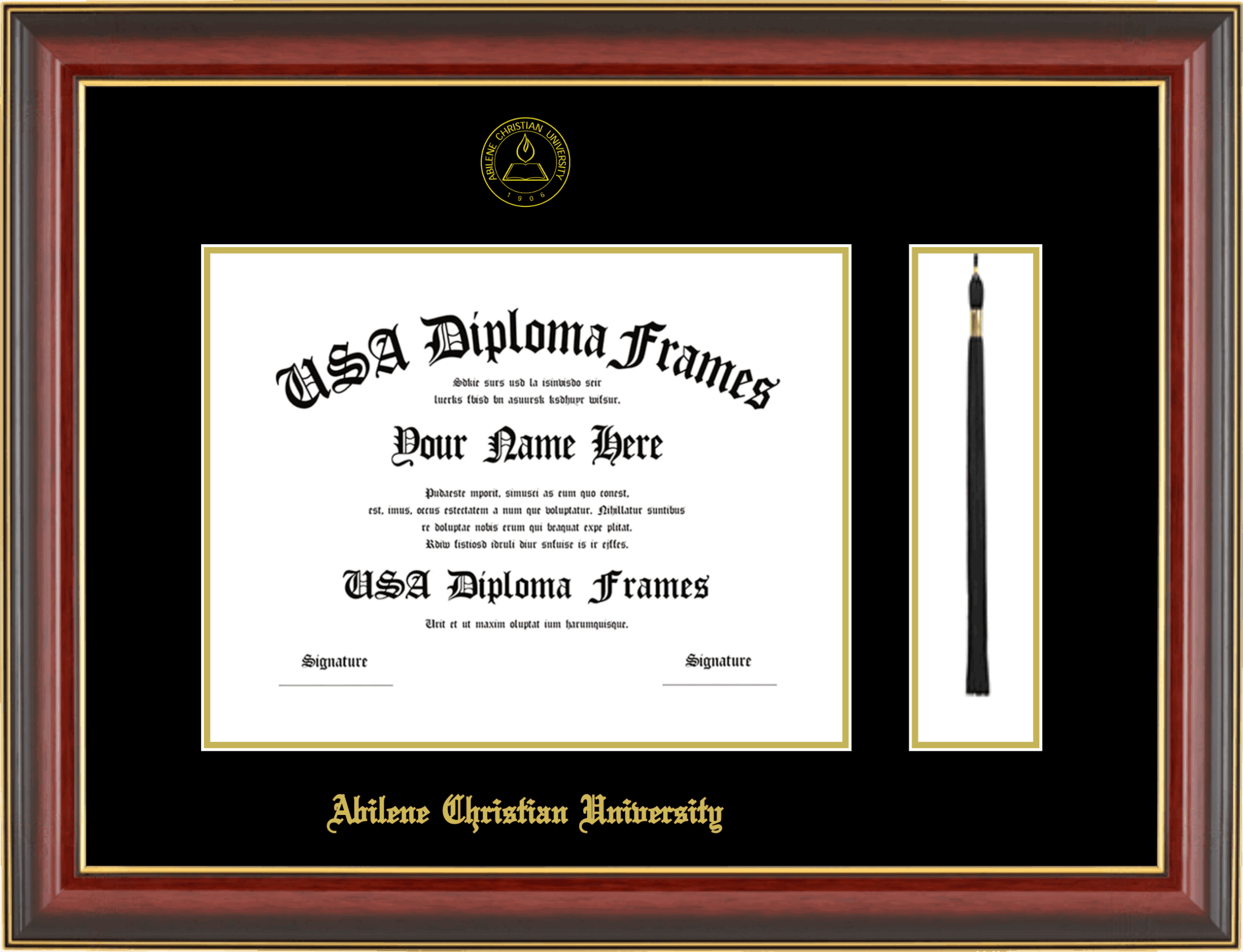 Abilene Christian University Diploma Frame with Tassel – ACU – Cherry Mahogany Gold Trim Glossy – Black and Gold Mat