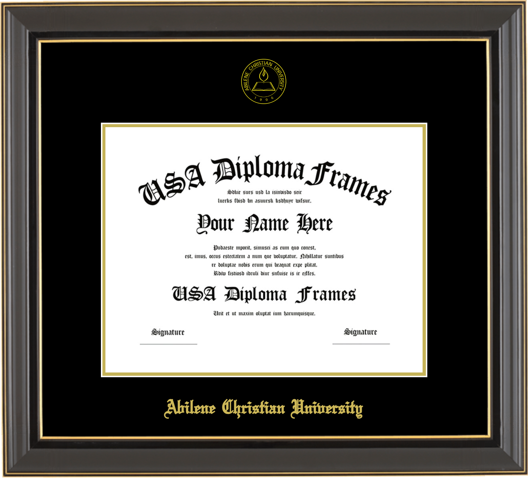 Abilene Christian University Diploma Frame – ACU – Black Gold Trim Glossy – Black and Gold Mat