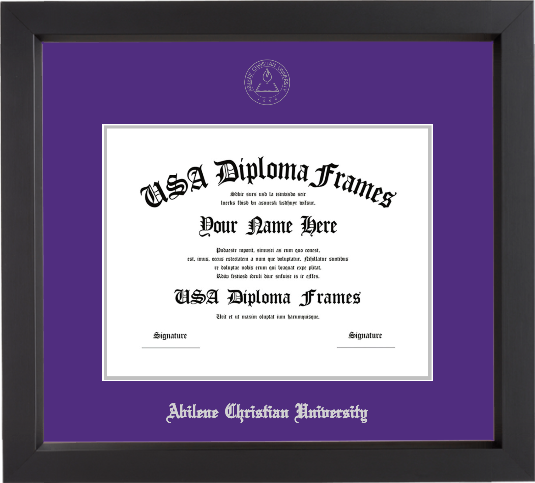 Abilene Christian University – Single Horizontal Document ( Bachelors/Masters ) – Black Matte – Purple Mat – Silver Accent Mat – With Seal(University Seal Silver) – With Silver Embossing (Abilene Christian University)