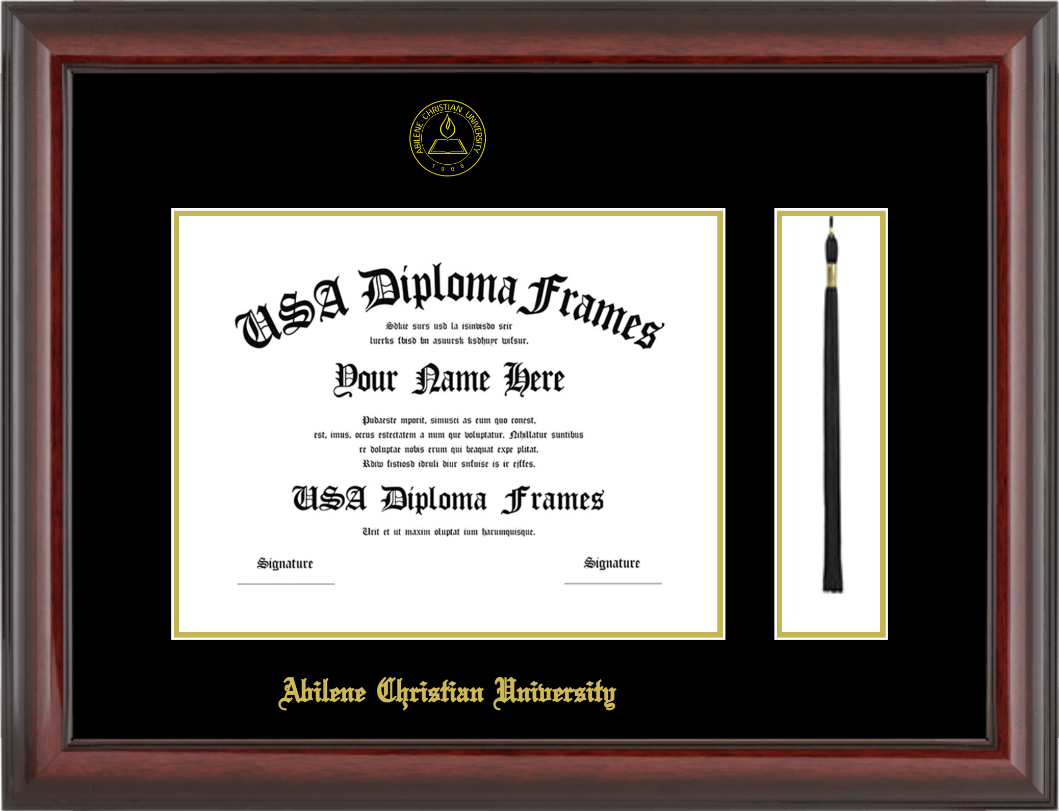 Abilene Christian University Diploma Frame with Tassel – ACU – Cherry Mahogany Glossy – Black and Gold Mat