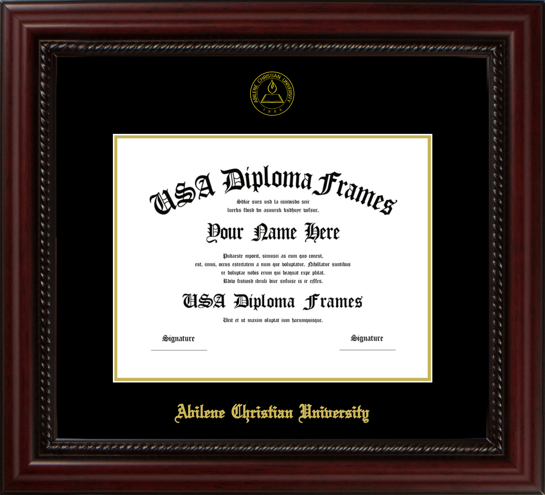 Abilene Christian University Diploma Frame – ACU – Executive Cherry Rope – Black and Gold Mat