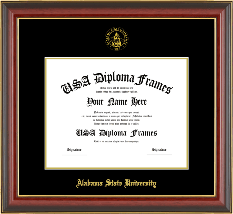 Alabama State University Diploma Frame – Cherry Mahogany Gold Trim Glossy – Black and Gold Mat
