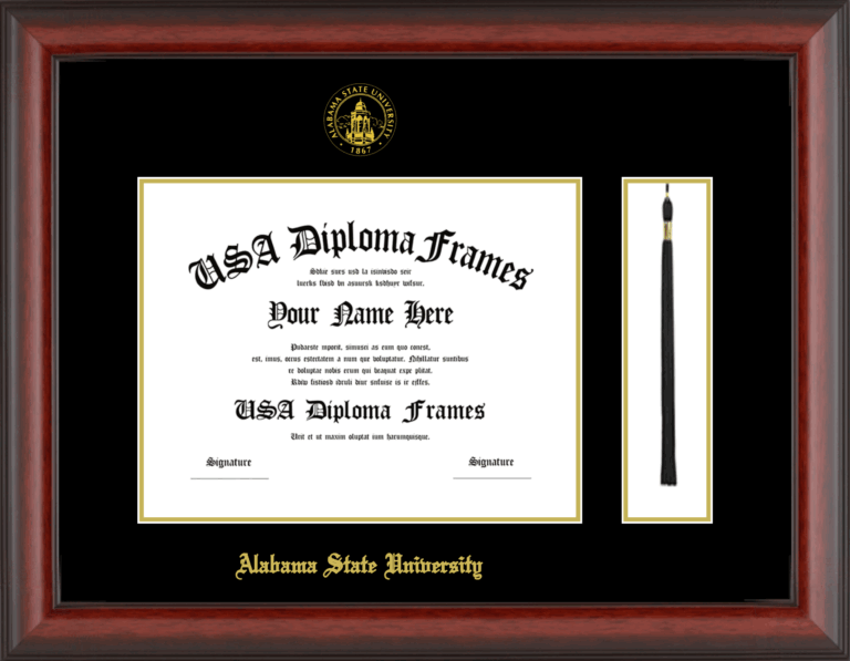 Alabama State University Diploma Frame with Tassel – Cherry Mahogany Matte – Black and Gold Mat