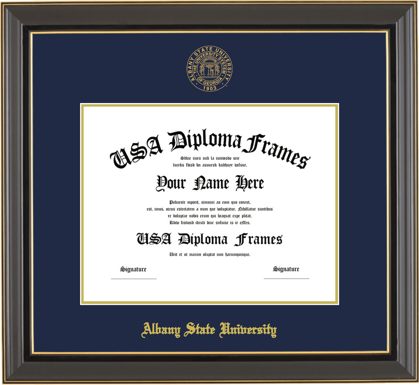 Albany State University (GA) – Single Horizontal Document ( Diploma ) – Black Gold Trim Glossy – Navy Mat – Gold Accent Mat