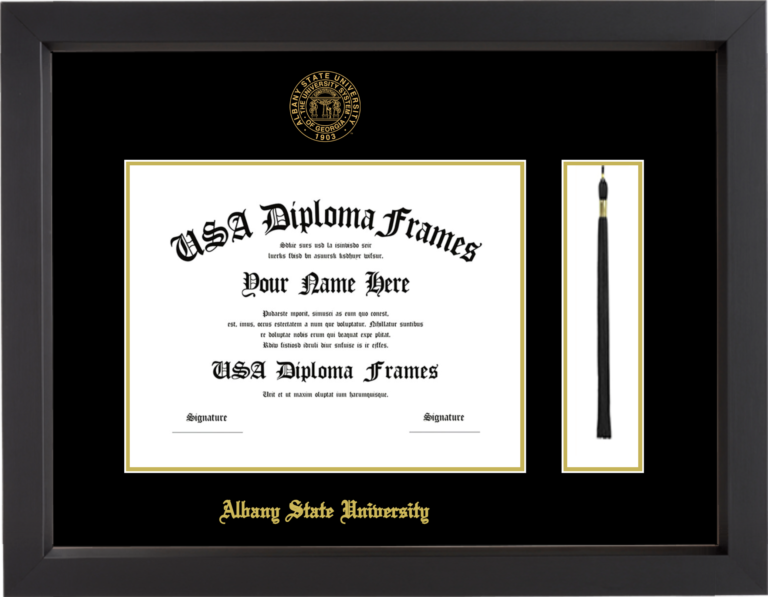 Albany State University Diploma Frame with Tassel – Black Matte – Black and Gold Mat