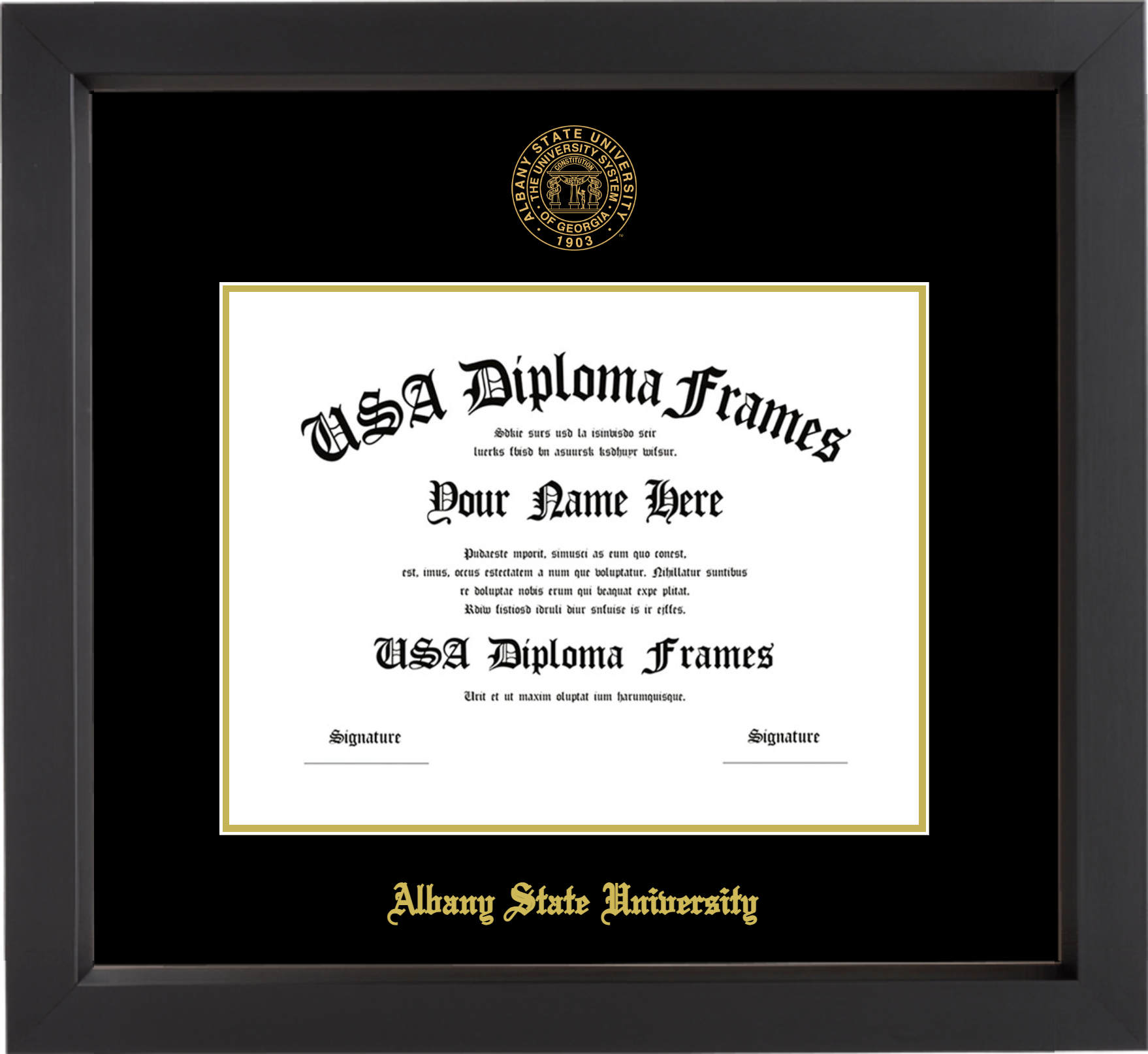 Albany State University (GA) – Single Horizontal Document ( Diploma ) – Black Matte – Black Mat – Gold Accent Mat