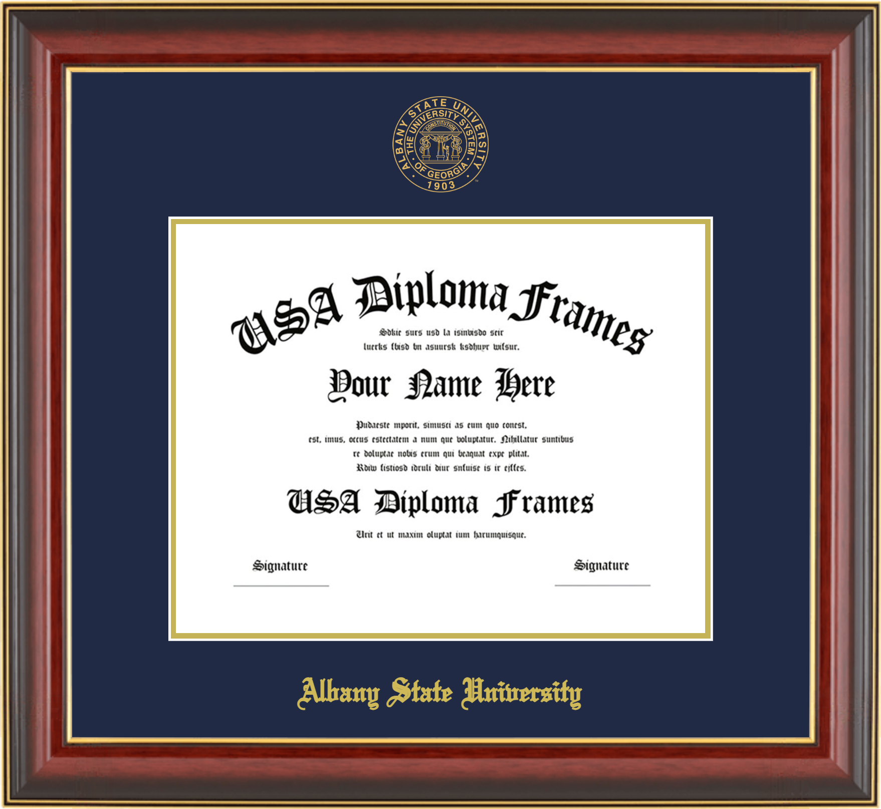 Albany State University (GA) – Single Horizontal Document ( Diploma ) – Cherry Mahogany Gold Trim Glossy – Navy Mat – Gold Accent Mat
