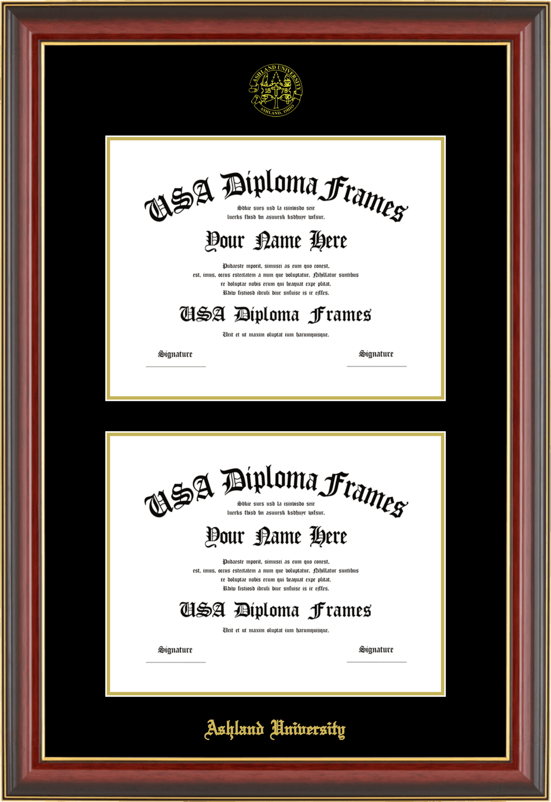 Ashland University Diploma Frame – Cherry Mahogany Gold Trim Glossy – Black and Gold Mat