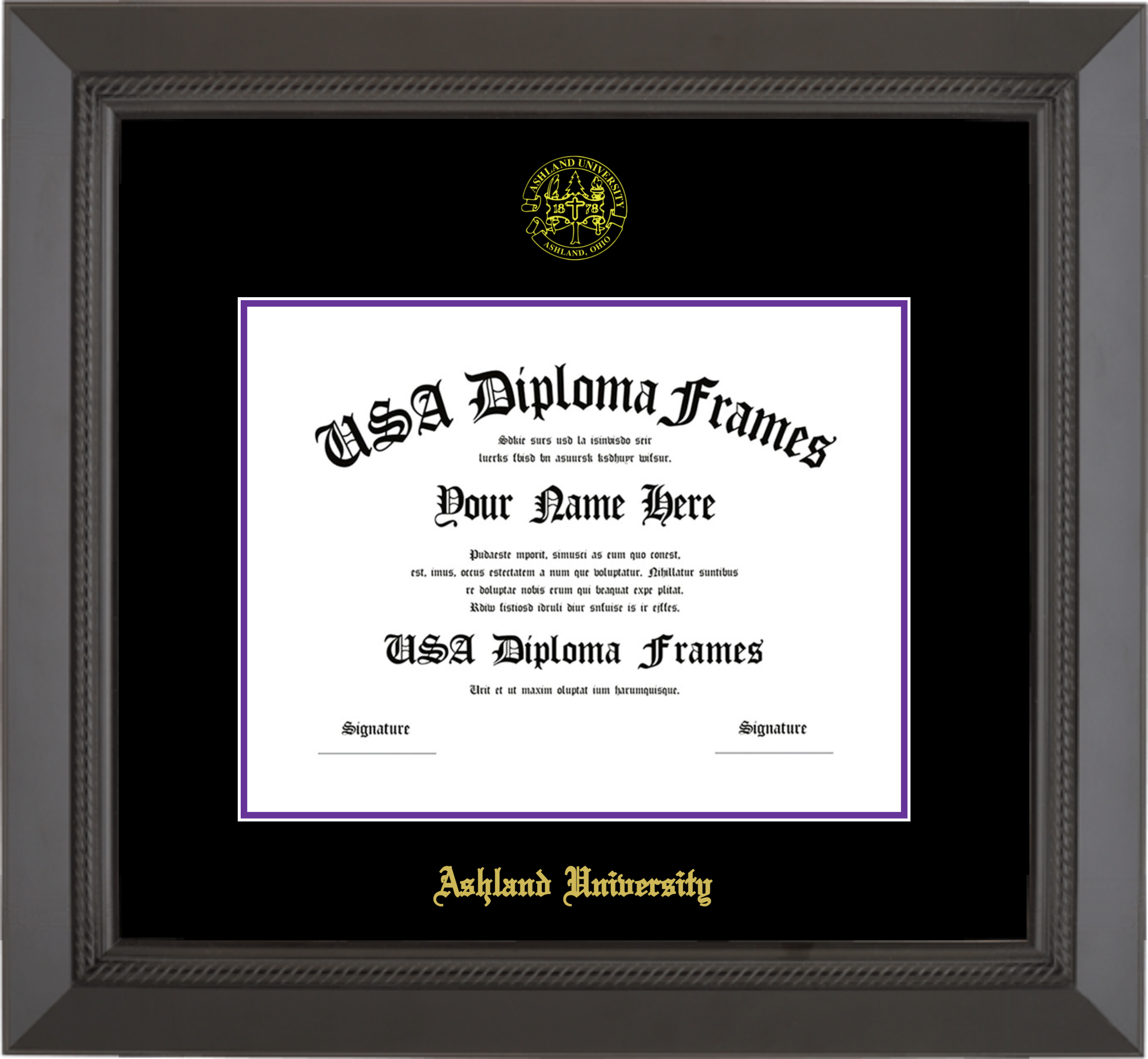 Ashland University Diploma Frame – Black Rope – Black and Purple Mat