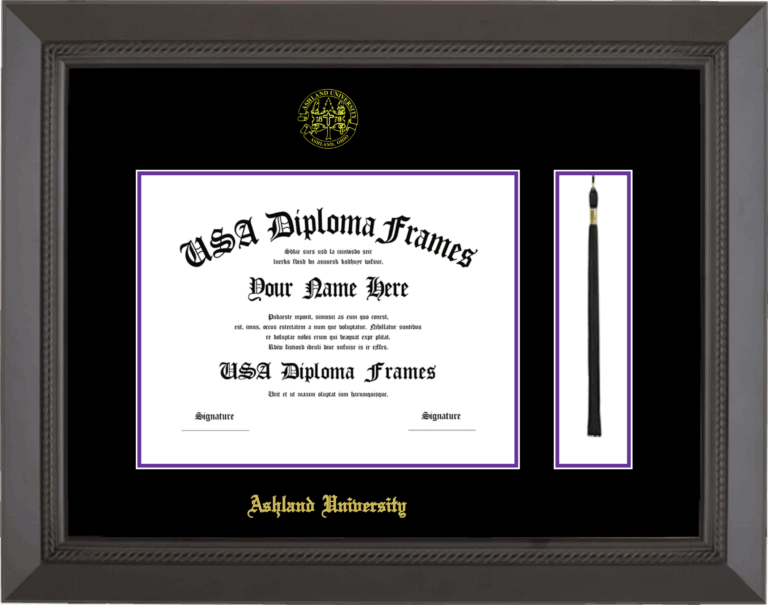 Ashland University Diploma Frame with Tassel – Black Rope – Black and Purple Mat