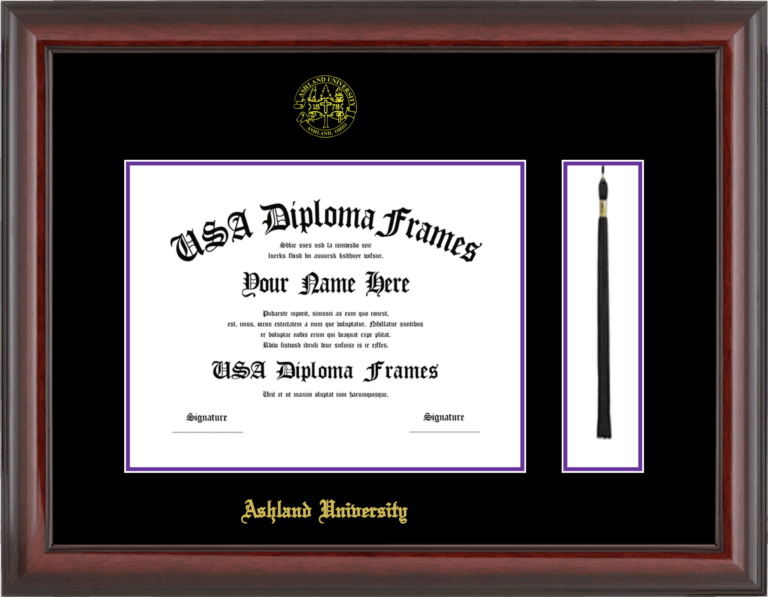 Ashland University Diploma Frame with Tassel – Cherry Mahogany Glossy – Black and Purple Mat