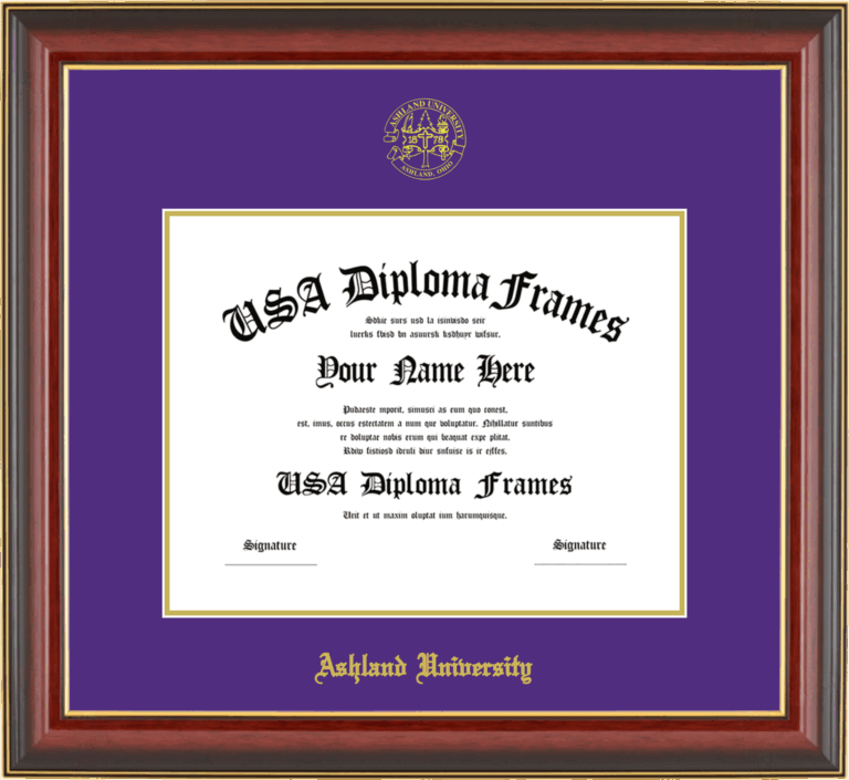 Want to explore more styles? Browse our full range of diploma frame layouts, or visit the Ashland University to view options available for your school. Looking for a fully personalized design? Try our custom Frame Builder and create a frame that’s uniquely yours.