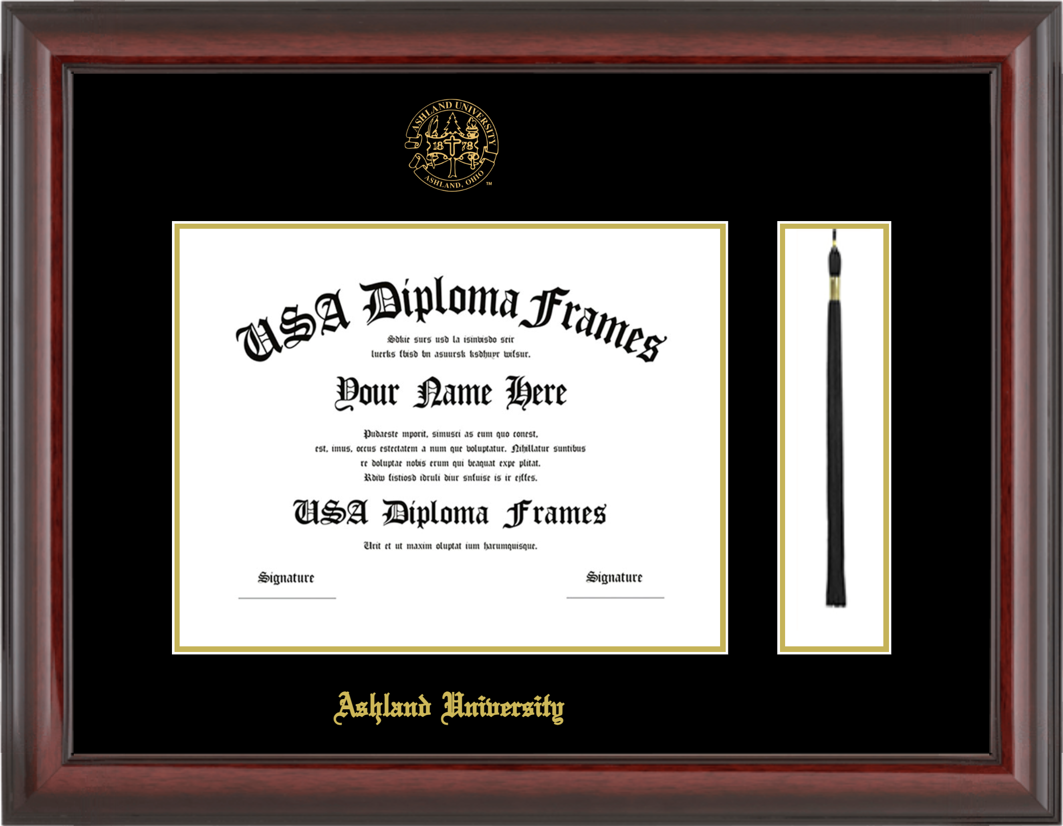 Ashland University Diploma Frame with Tassel – Cherry Mahogany Glossy – Black and Gold Mat