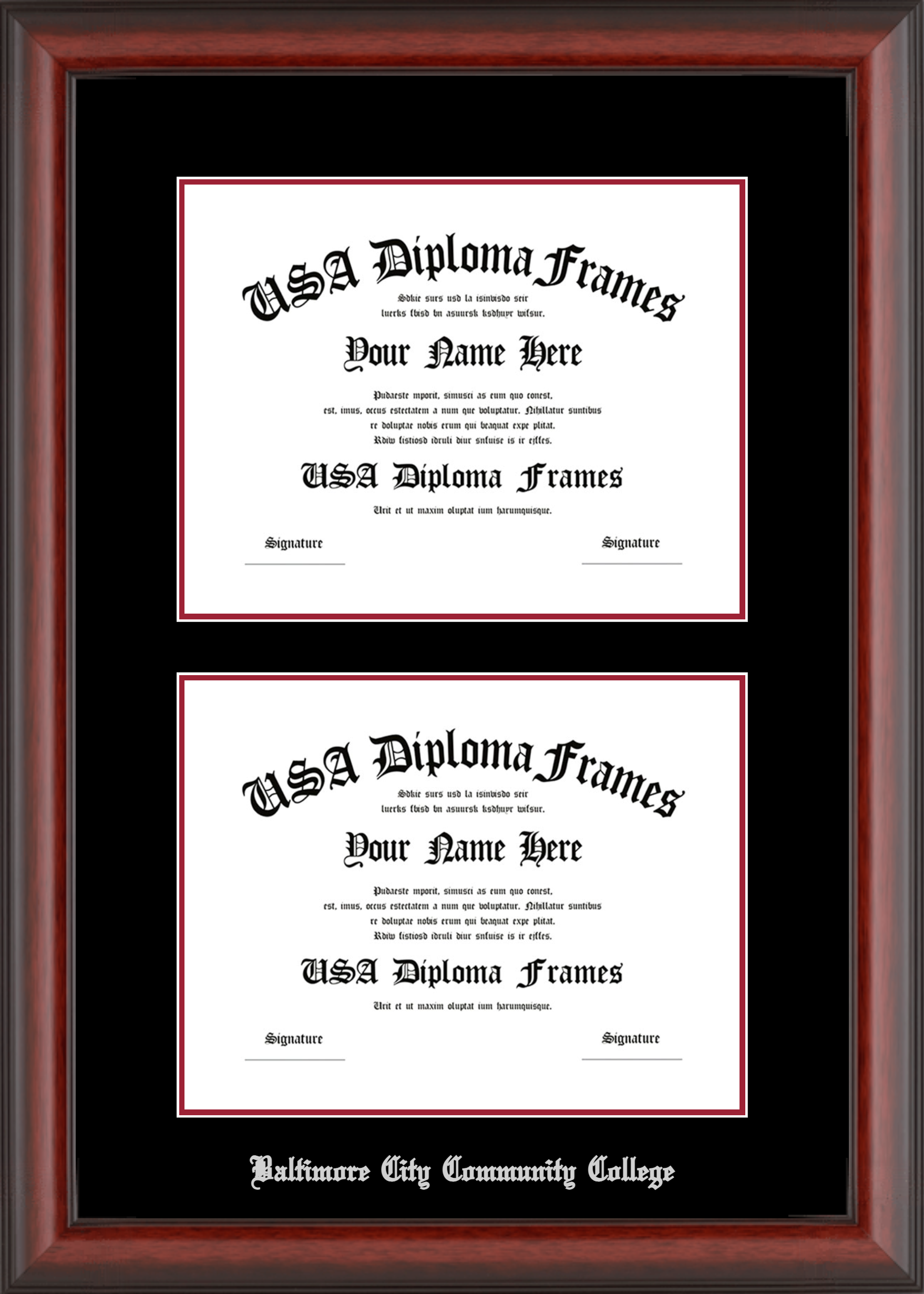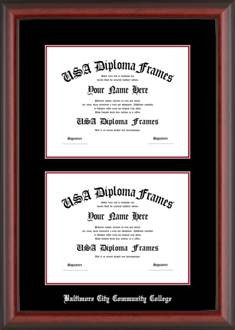 Baltimore City Community College Double Diploma Frame – Double Document – Cherry Mahogany Matte – Black and Crimson Mat