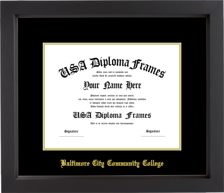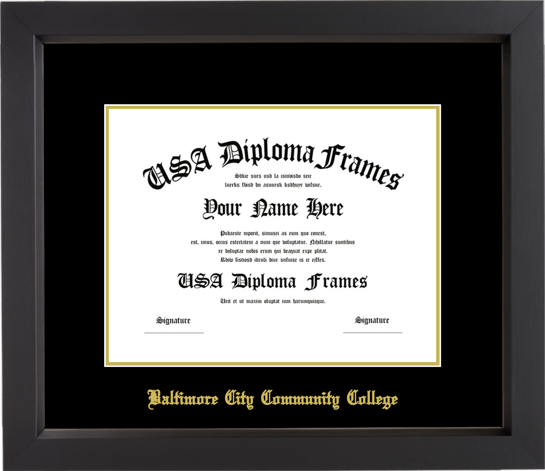 Baltimore City Community College Diploma Frame – BCCC – Black Matte – Black and Gold Mat