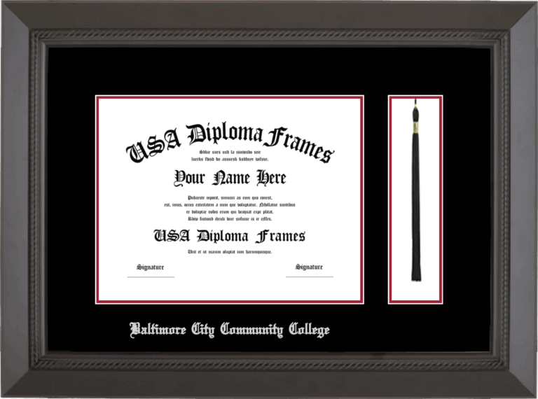 Baltimore City Community College Diploma Frame with Tassel – Black Rope – Black and Crimson Mat