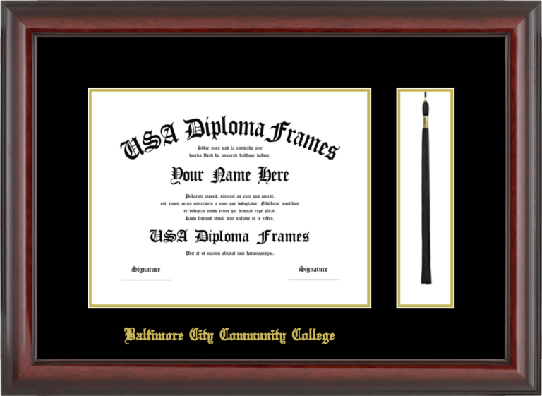 Baltimore City Community College Diploma Frame with Tassel – Cherry Mahogany Glossy – Black and Gold Mat