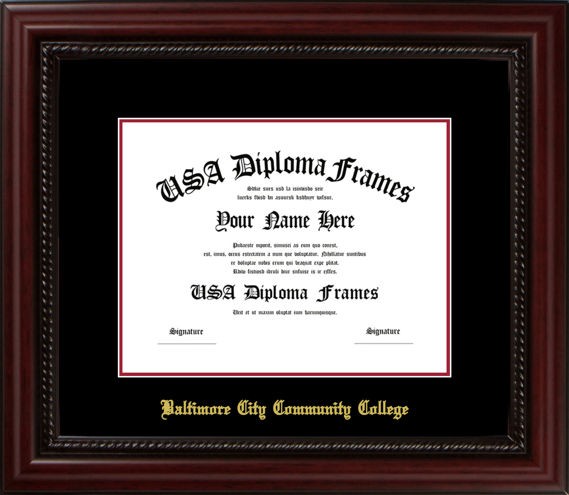 Baltimore City Community College Diploma Frame – Executive Cherry Rope – Black and Crimson Mat