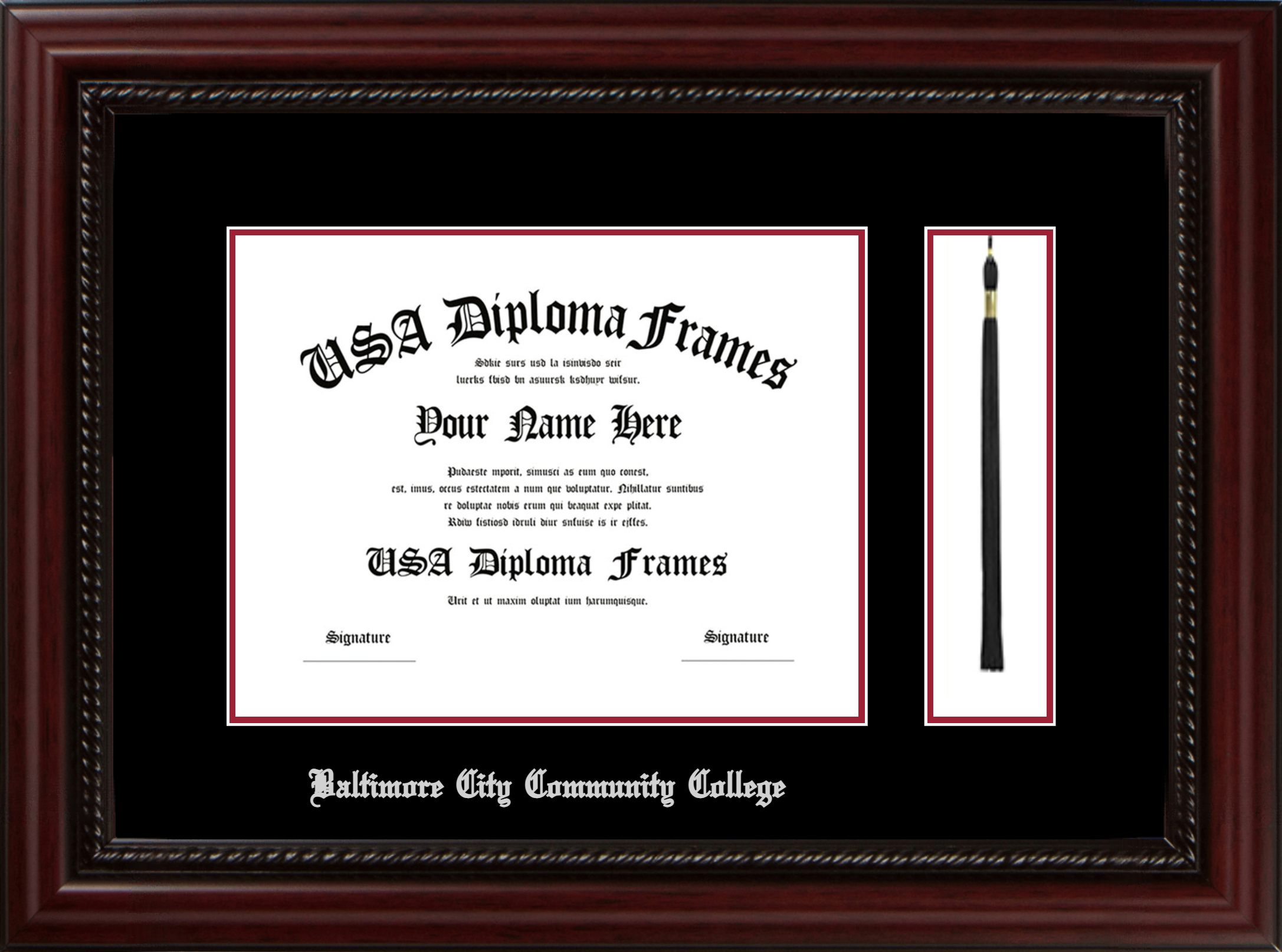Baltimore City Community College Diploma Frame with Tassel – Executive Cherry Rope – Black and Crimson Mat