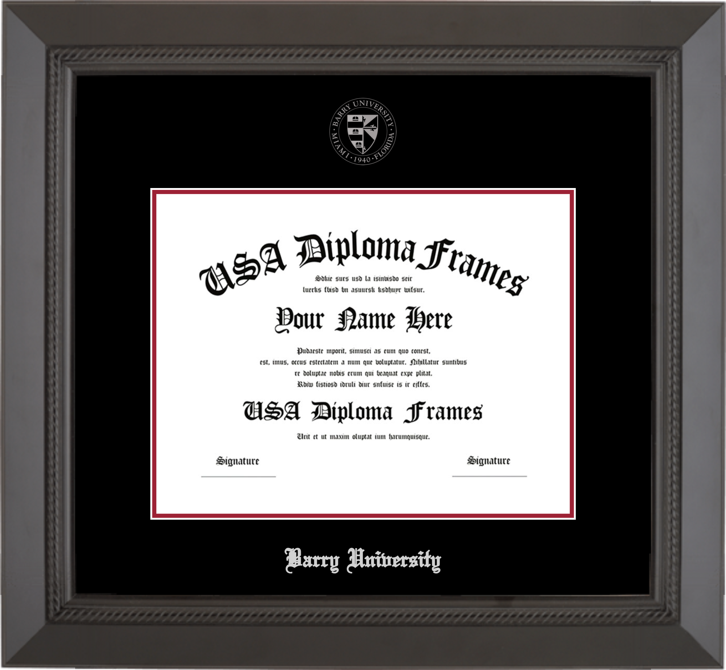 Barry University Diploma Frame – Black Rope – Black and Crimson Mat – Silver Seal