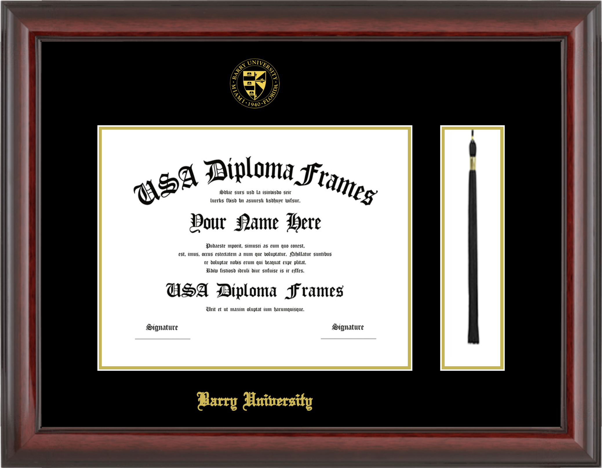 Barry University Diploma Frame with Tassel – Cherry Mahogany Glossy – Black and Gold Mat