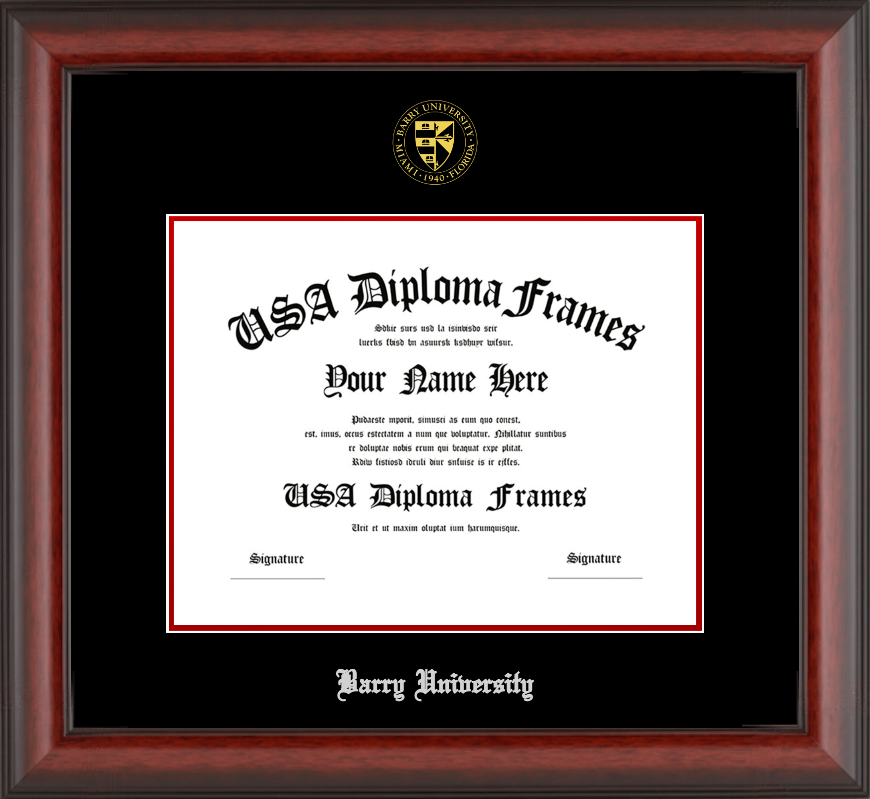 Barry University – Single Horizontal Document ( Bachelors/Masters ) – Cherry Mahogany Matte – Black Mat – Red Accent Mat – With Seal(University Seal Gold) – With Silver Embossing (Barry University)