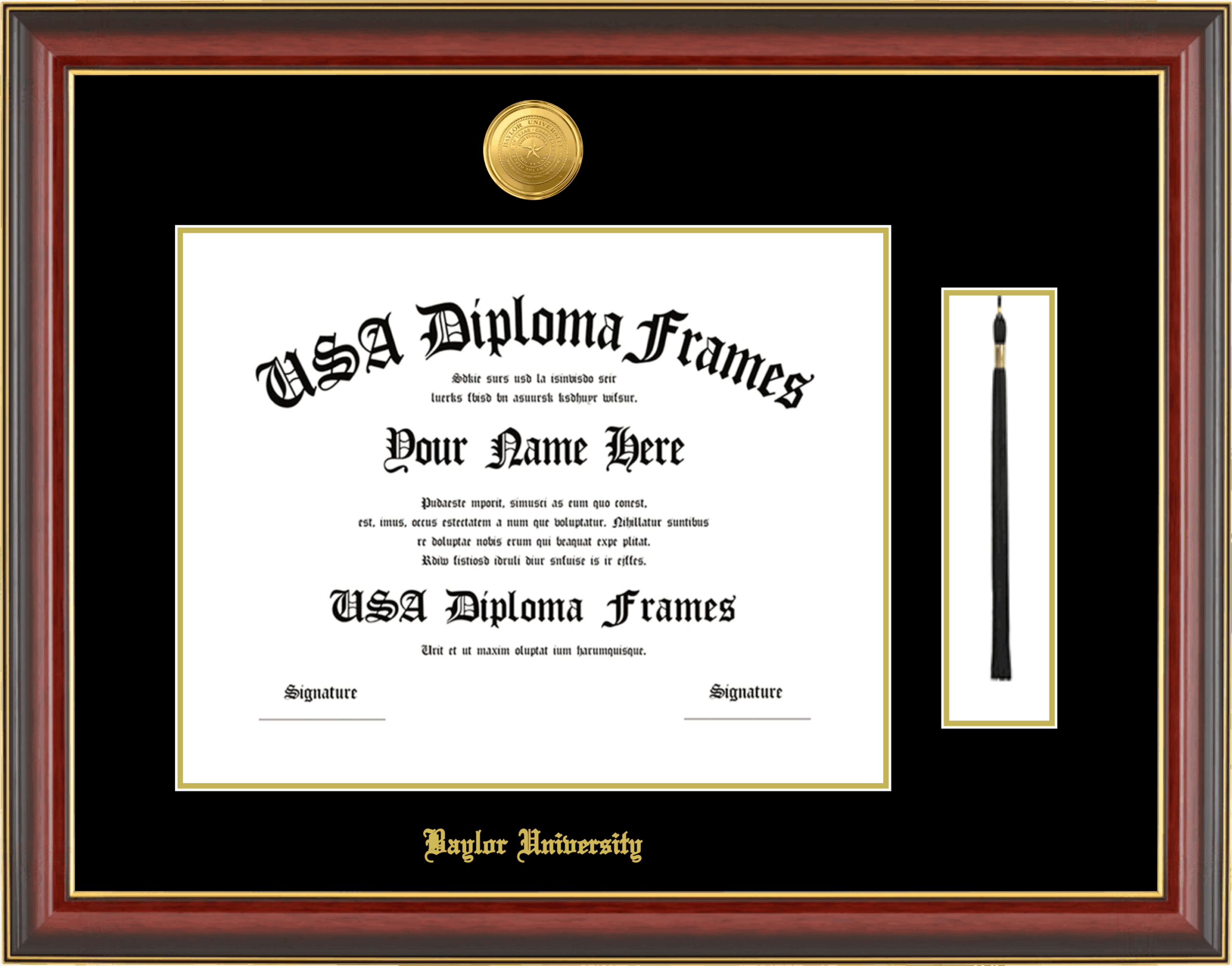 Baylor University Diploma Frame with Tassel – Cherry Mahogany Gold Trim Glossy – Black and Gold Mat – Medallion
