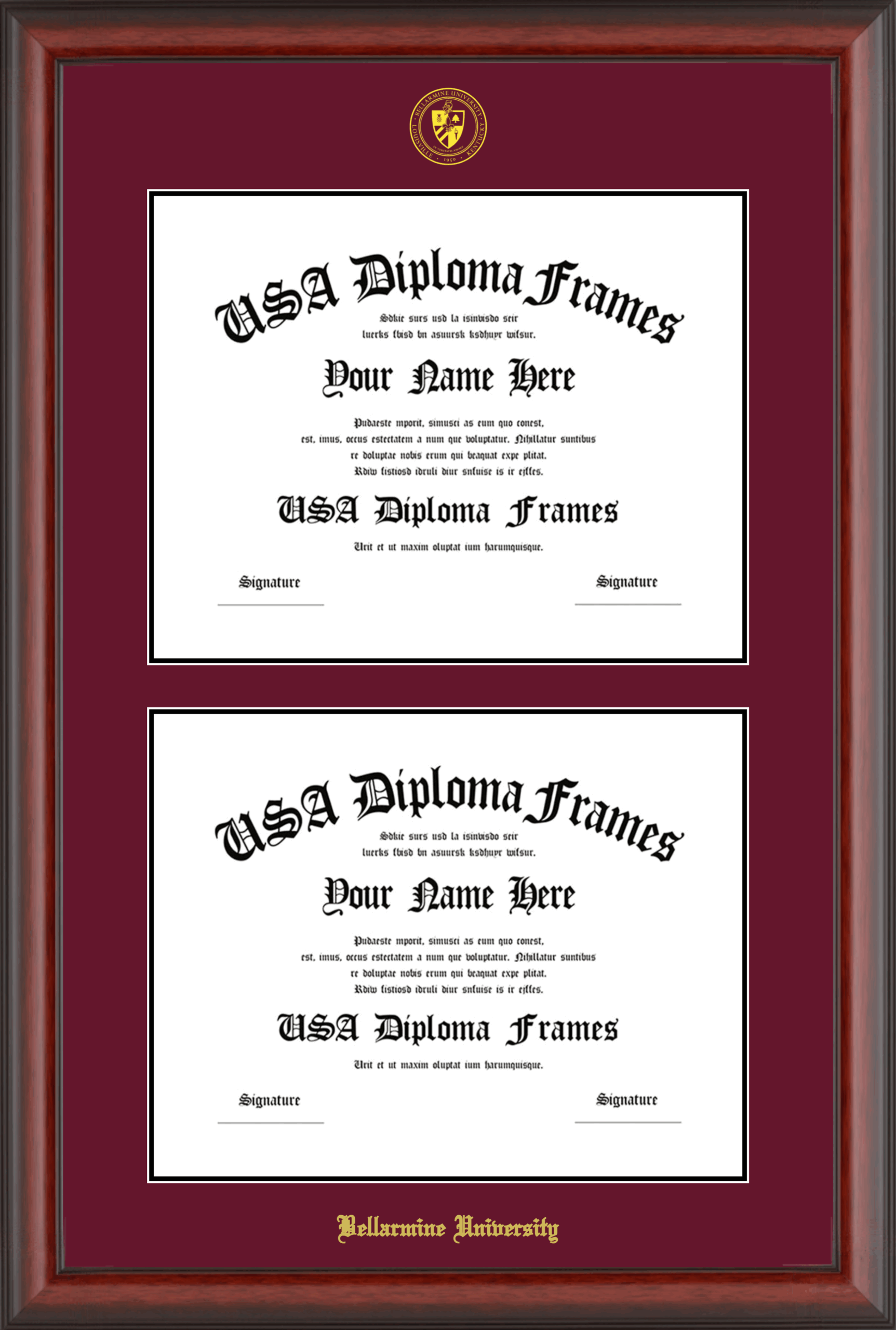 Bellarmine University Double Diploma Frame – Double Document – Cherry Mahogany Matte – Maroon and Black Mat