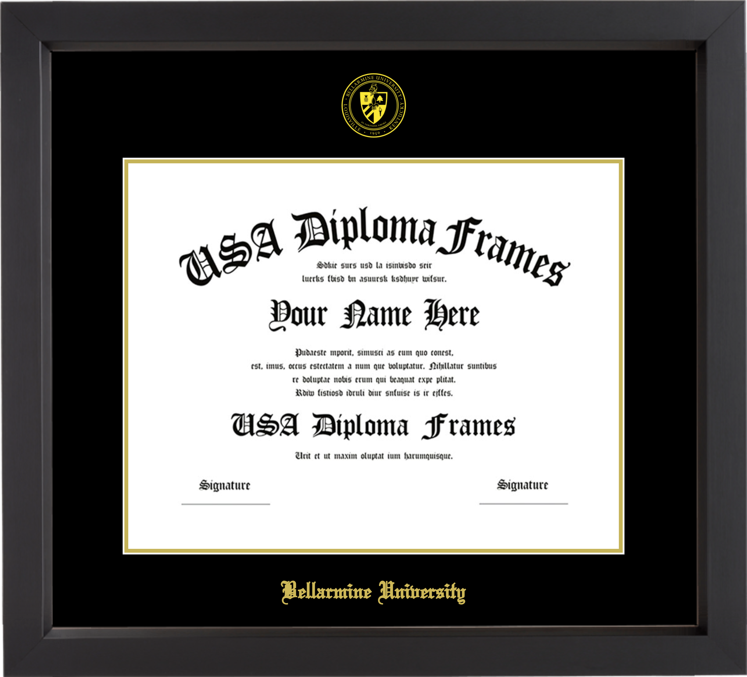 Bellarmine University Diploma Frame – Black Matte – Black and Gold Mat