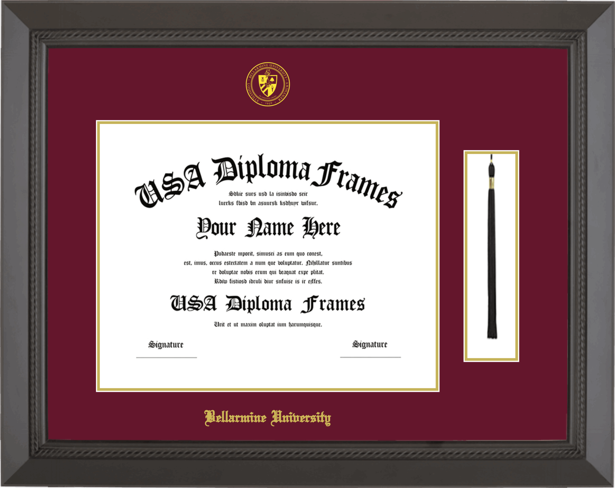 Bellarmine University – Single Horizontal Document ( Diploma ) – Black Rope – Maroon Mat – Gold Accent Mat – With Tassel(Default) – With Seal(University Seal Gold) – With Gold Embossing (Bellarmine University)
