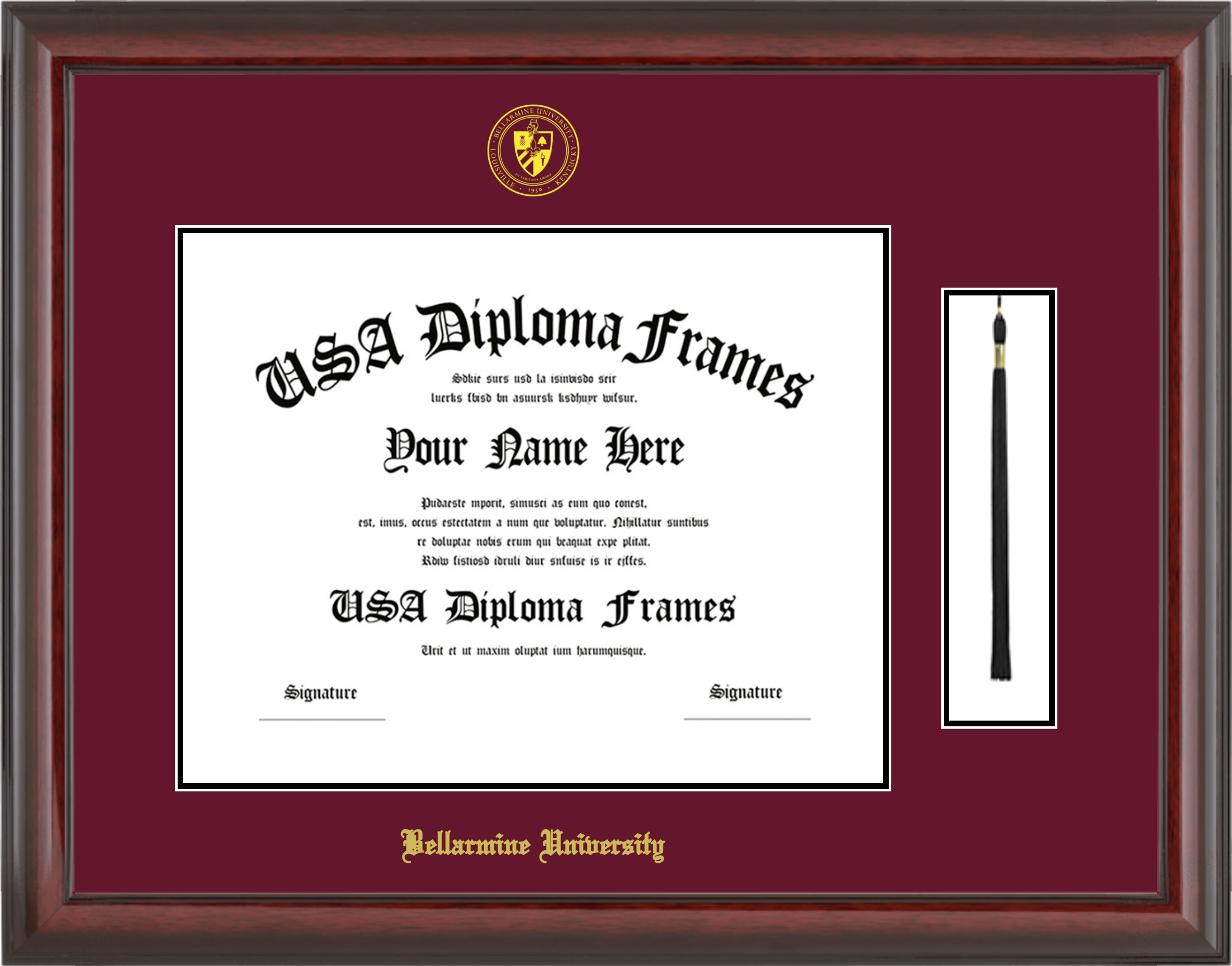 Bellarmine University – Single Horizontal Document ( Diploma ) – Cherry Mahogany Glossy – Maroon Mat – Black Accent Mat – With Tassel(Default) – With Seal(University Seal Gold) – With Gold Embossing (Bellarmine University)