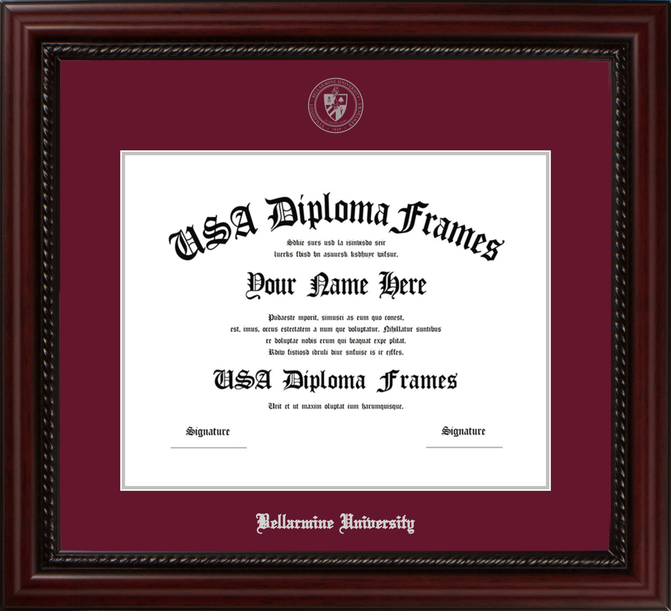 Bellarmine University – Single Horizontal Document ( Diploma ) – Executive Cherry Rope – Maroon Mat – Silver Accent Mat – With Seal(University Seal Silver) – With Silver Embossing (Bellarmine University)