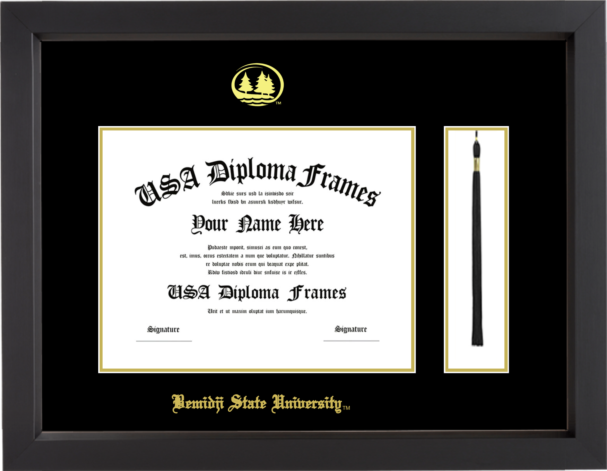 Bemidji State University Diploma Frame with Tassel – Black Matte – Black and Gold Mat