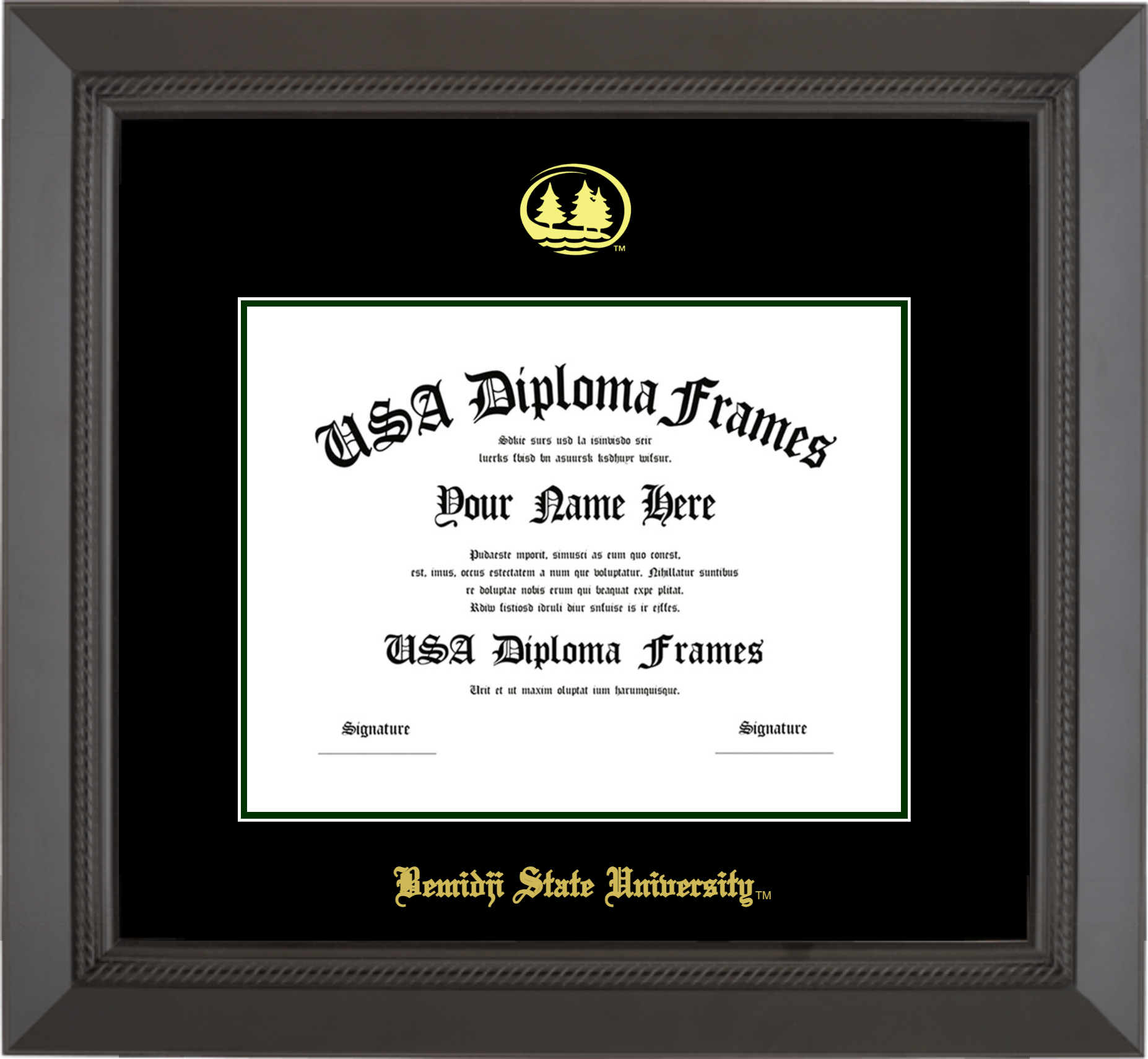 Bemidji State University Diploma Frame – Black Rope – Black and Winter Green Mat