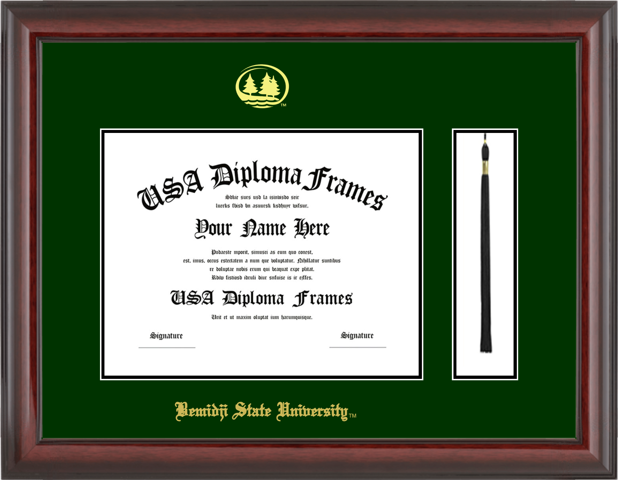 Bemidji State University Diploma Frame with Tassel – Cherry Mahogany Glossy – Winter Green and Black Mat