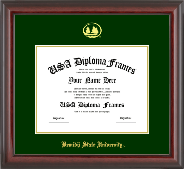 Want to explore more styles? Browse our full range of diploma frame layouts, or visit the Bemidji State University to view options available for your school. Looking for a fully personalized design? Try our custom Frame Builder and create a frame that’s uniquely yours.