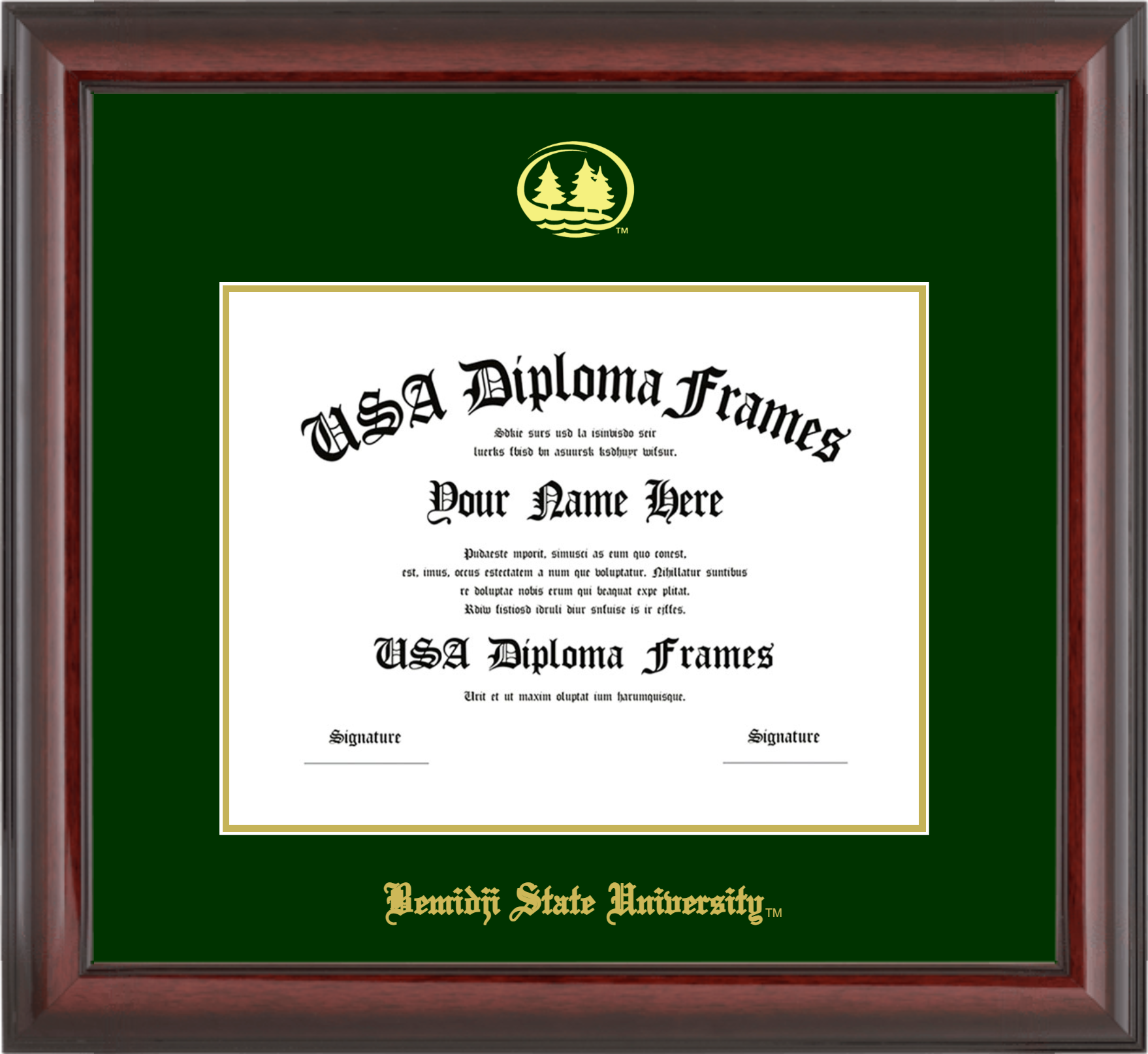 Bemidji State University – Single Horizontal Document ( Diploma ) – Cherry Mahogany Glossy – Winter Green Mat – Gold Accent Mat – With Seal(University Seal Gold) – With Gold Embossing (Bemidji State University)