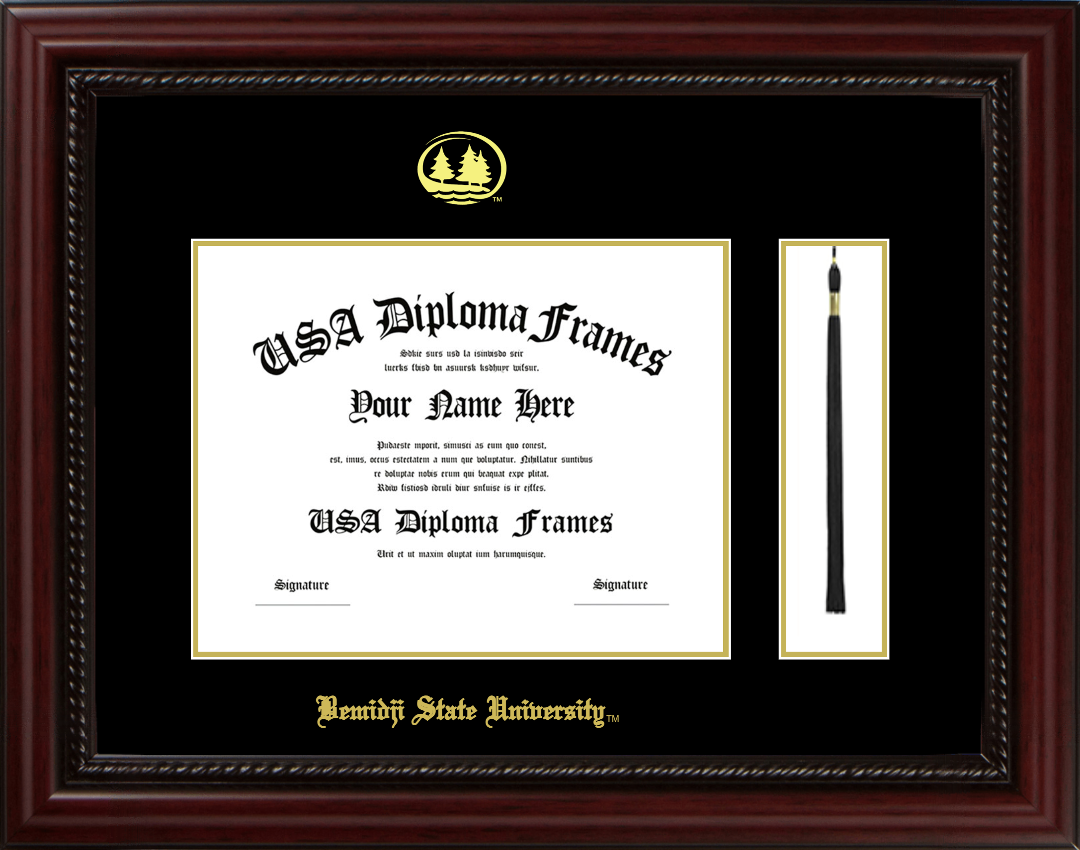 Bemidji State University Diploma Frame with Tassel – Executive Cherry Rope – Black and Gold Mat