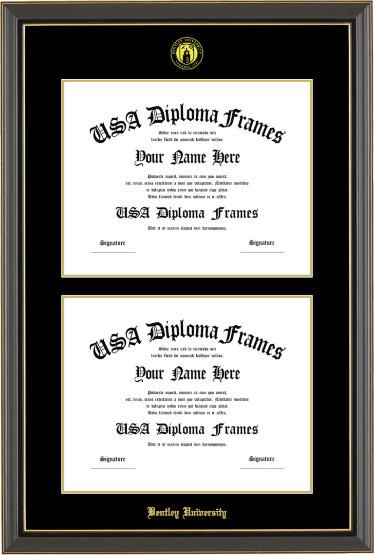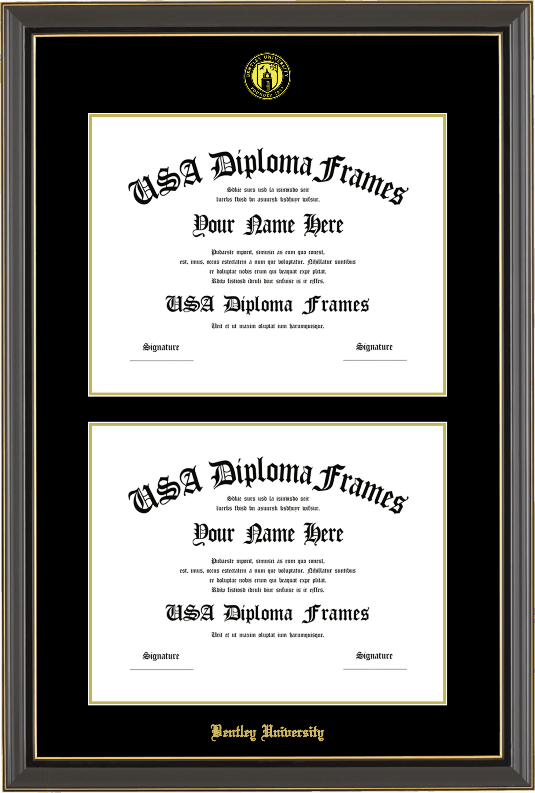 Bentley University Double Diploma Frame – Double Document – Black Gold Trim Glossy – Black and Gold Mat