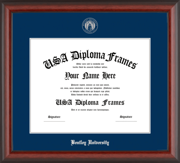 Want to explore more styles? Browse our full range of diploma frame layouts, or visit the Bentley University to view options available for your school. Looking for a fully personalized design? Try our custom Frame Builder and create a frame that’s uniquely yours.