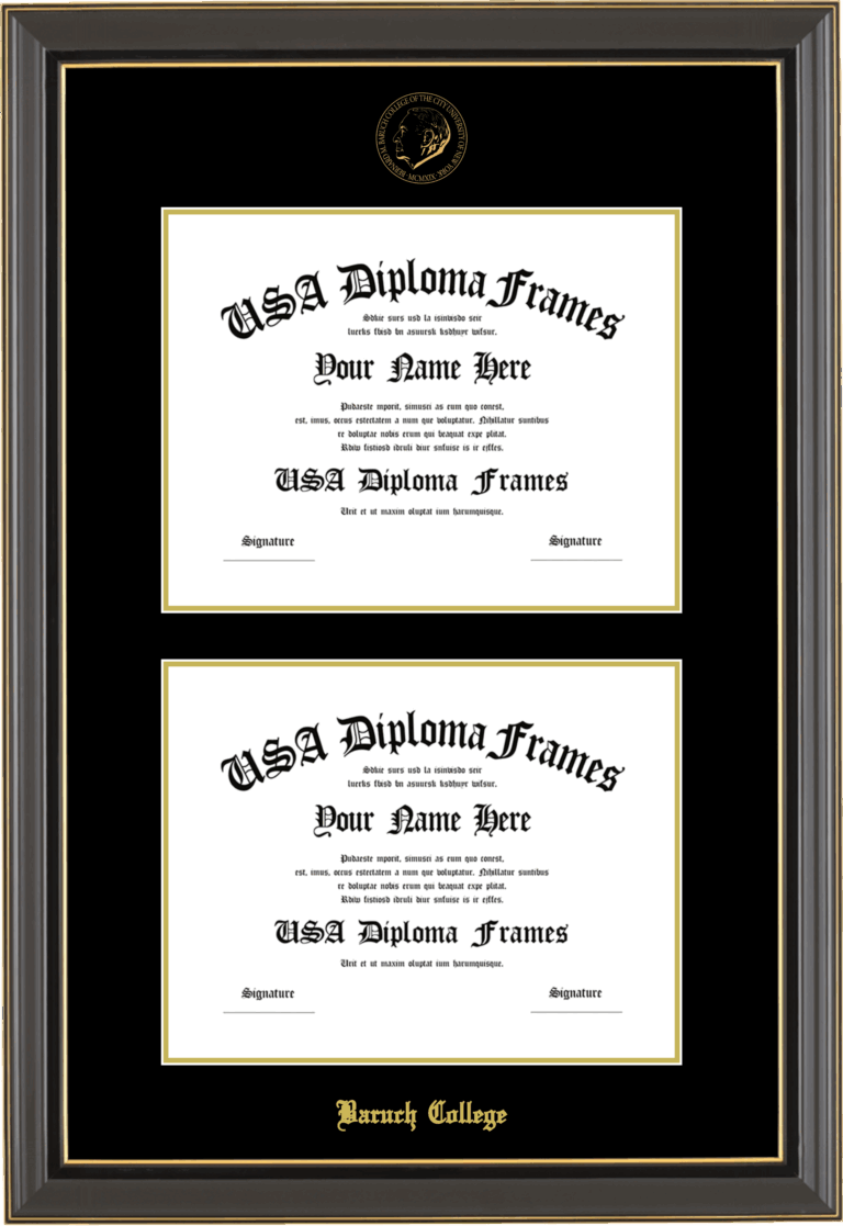 Baruch College Double Diploma Frame – Black Gold Trim Glossy – Black and Gold Mat