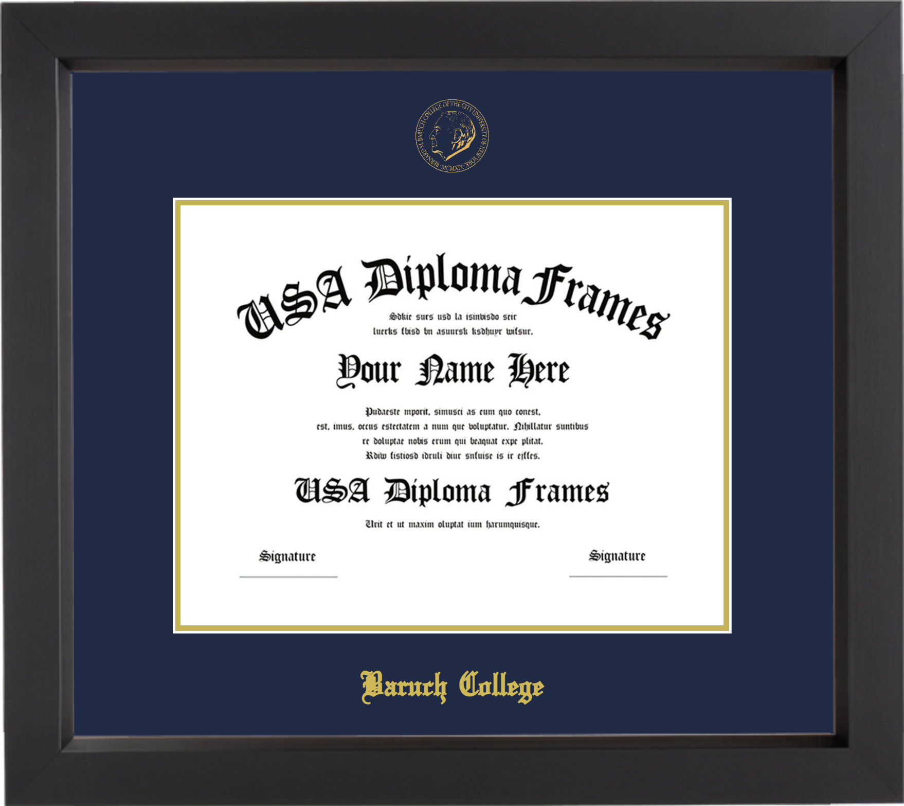 Bernard M. Baruch College of the City University of New York – Single Horizontal Document ( Diploma ) – Black Matte – Navy Mat – Gold Accent Mat – With Seal(University Seal Gold) – With Gold Embossing (Baruch College)