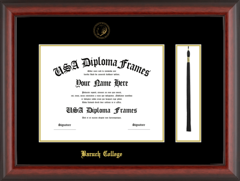 Baruch College Diploma Frame with Tassel – Cherry Mahogany Matte – Black and Gold Mat