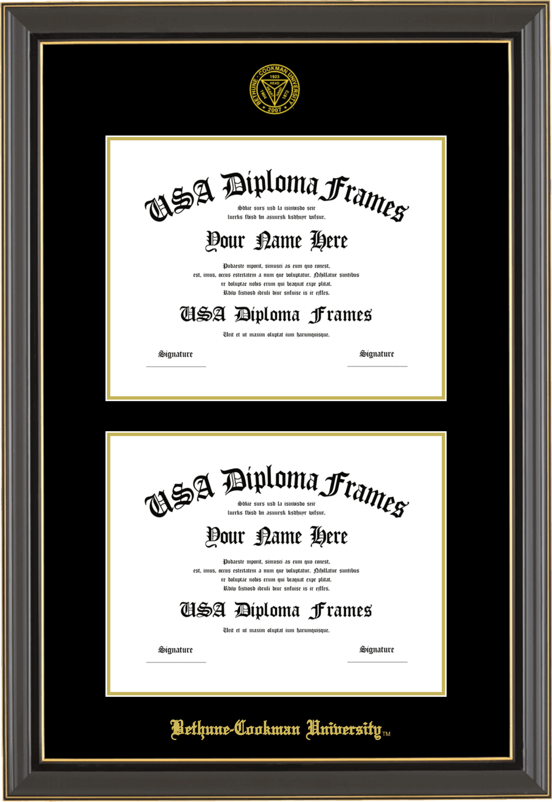 Bethune-Cookman University Double Diploma Frame – Double Document – Black Gold Trim Glossy – Black and Gold Mat