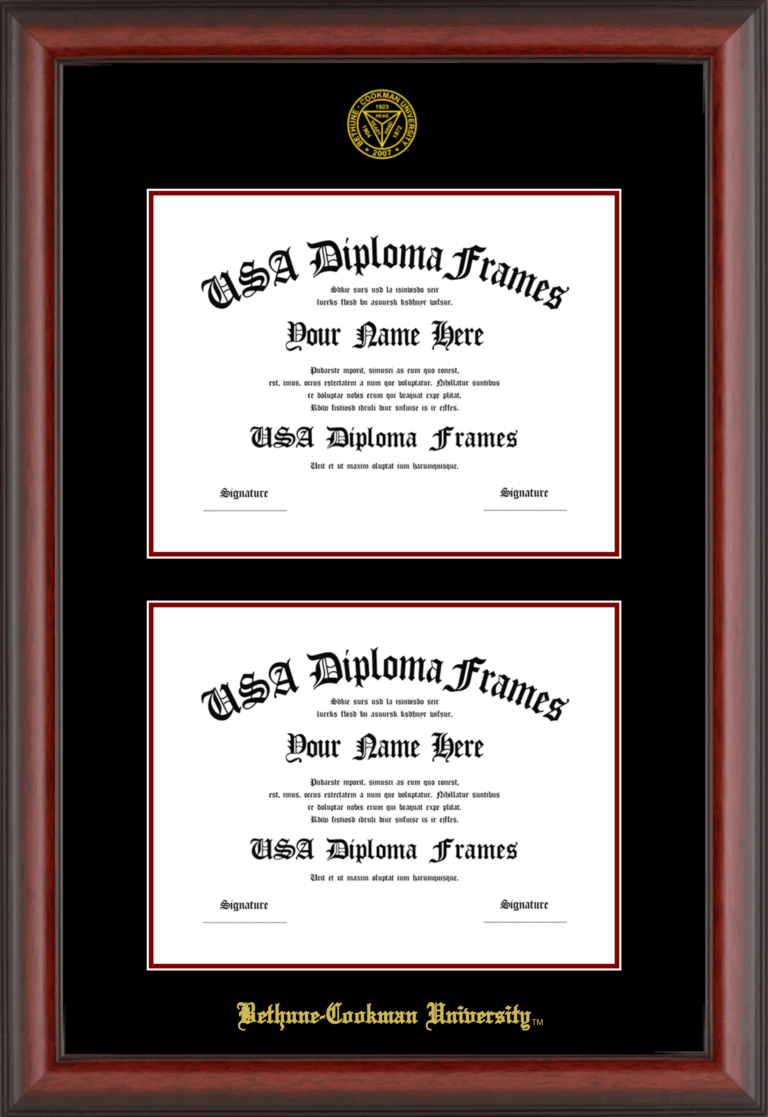 Bethune-Cookman University Double Diploma Frame – Double Document – Cherry Mahogany Matte – Black and Maroon Mat