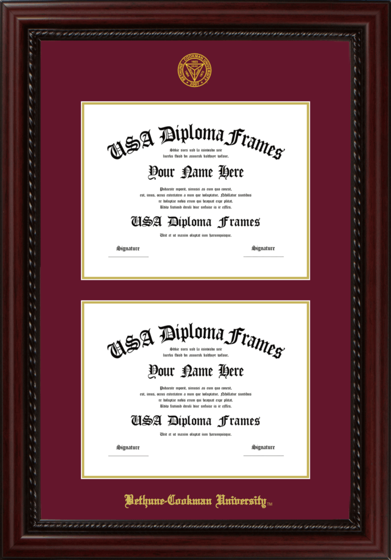Bethune-Cookman University Double Diploma Frame – Double Document – Executive Cherry Rope – Maroon and Gold Mat