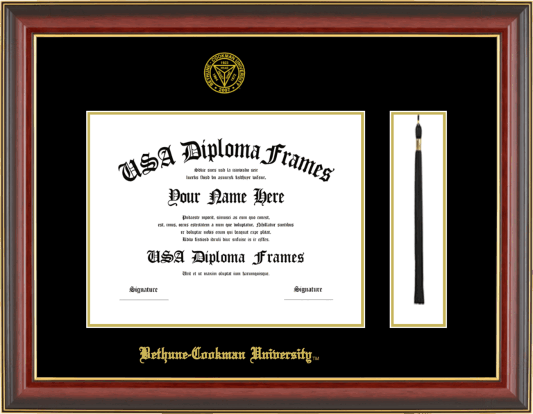 Bethune-Cookman University Diploma Frame with Tassel – Bachelor’s 8.5x 11 – Cherry Mahogany Gold Trim Glossy – Black and Gold Mat