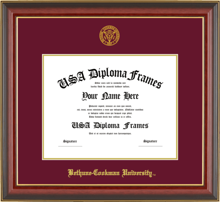 Bethune-Cookman University Diploma Frame – Bachelor’s 8.5x 11 – Cherry Mahogany Gold Trim Glossy – Maroon and Gold Mat
