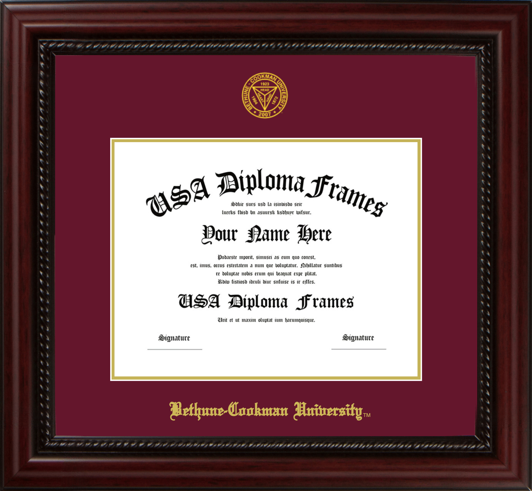 Bethune-Cookman University – Single Horizontal Document ( Bachelors ) – Executive Cherry Rope – Maroon Mat – Gold Accent Mat – With Seal(University Seal Gold) – With Gold Embossing (Bethune-Cookman University)